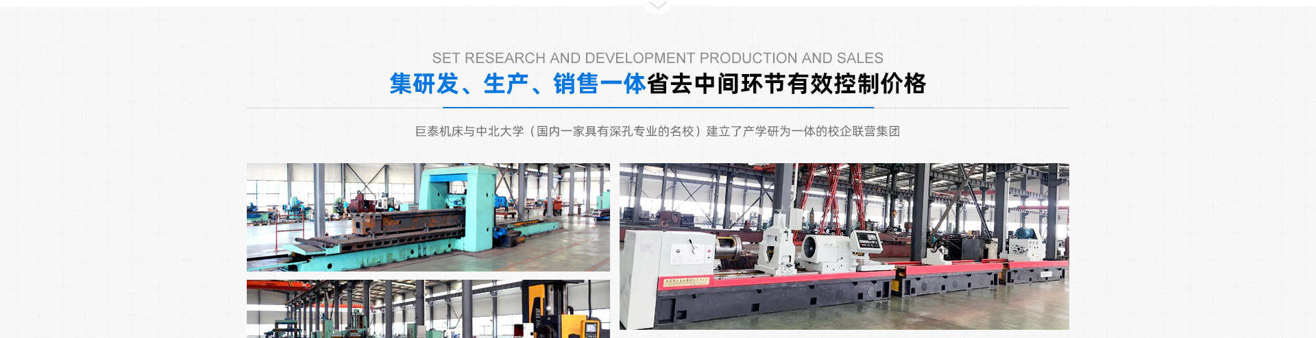 德州市巨泰機床制造有限公司位于具有“九達天衢”、“津京之門”之稱的山東省德州市。是生產深孔鉆鏜床的廠家,為把我們在深孔制造方面打造的更成熟,我們與中北大學(國內一家具有深孔專業的名校)建立了產學研為一體的校企聯營集團,成為兩方共同開發、研究、突破的“深孔”基地。